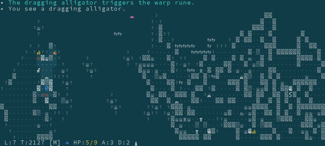 - 9 levels deep dungeon, 3 distinct map generators, 29 monsters including various wandering uniques and guardians, 5 primary spirits and 7 secondary ones, 4 magic menhirs, 5 runic traps, and 7 comestibles.
